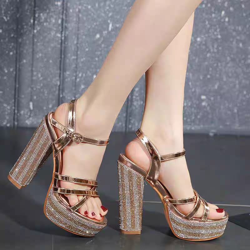 Hentian High Nightclub Women’s Shoes Spring New European and American Super High Heels Waterproof Platform Champagne Color Women’s