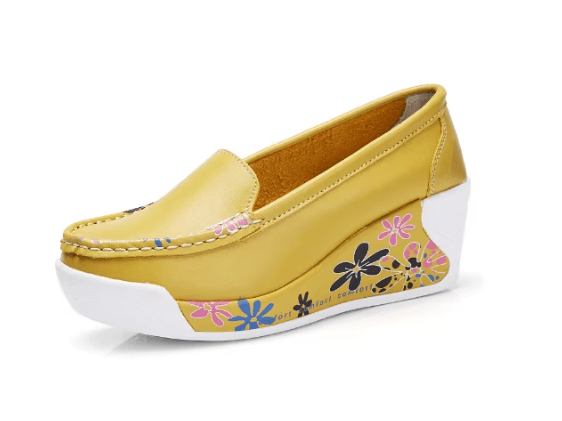 These yellow mid heel slip-on shoes offer the perfect combination of comfort, durability, and standout style.